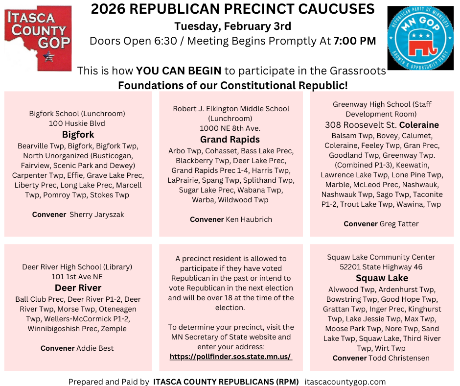 The 2026 precinct caucuses are scheduled to be held on Tuesday, February 3, 2026 at 7:00 p.m.